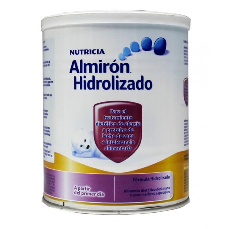 Alimento en polvo que favorece la función intestinal en los pequeños.'Almirón Hidrolizado 400g se trata de una solución en polvo para la alimentación elabora sin lactosa, para aquellos que no toleran la lactosa o la leche de vaca y por consiguiente no tienen una buena digestión. El origen de su fórmula es completamente vegetal y resulta óptima para los más pequeños de la casa. Introduce uno novedad en el sistema de su formato, al ser más higiénico su diseño de suspensión del cacillo en la tapa.