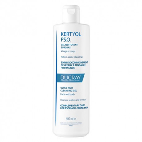 Gel de limpieza con un perfume agradable, indicado para cara y cuerpo recomendado para personas con tendencia psoriática.Ducray Kertyol PSO Gel Limpiador Sobregraso 400ml limpia, alivia y protege las pieles con placas secas y espesas. Cuenta como principales activos en su formulación con celastrol, vederine y glicerina. El celastrol es un activo calmante implicado en la psoriasis que actúa directamente en los queratinocitos reduciendo la aparición de las placas y mejorando el aspecto de la piel. Vederine favorece la diferenciación celular para que las placas se desprendan más fácilmente de la piel. Y la glicerina es un activo hidratante para restaurar la flexibilidad y el confort de la piel.