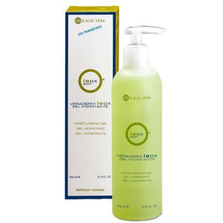 Solución ideal para piel en un cómodo formato de gel con difusor de presión para una correcta aplicación diaria.IOOX Veraderm Gel Hidratante 250ml se trata de una solución en gel corporal, preparada con aloe vera 100% puro, el cual posee una gran cantidad de beneficios, como por ejemplo, la limpieza, la hidratación o su poder de regeneración, purificando enormemente la piel, frente a los aparentes signos del acné. Hidrata la piel, la refresca, y la deja completamente suave. Siente la hidratación en la piel desde el primer momento en el que utilices le gel. Notarás como mejora el aspecto visiblemente. Además, cuida y protege tu dermis, sin alterarla ni irritarla, evitando daños provocados por agentes externos, como, por ejemplo la radiación solar.