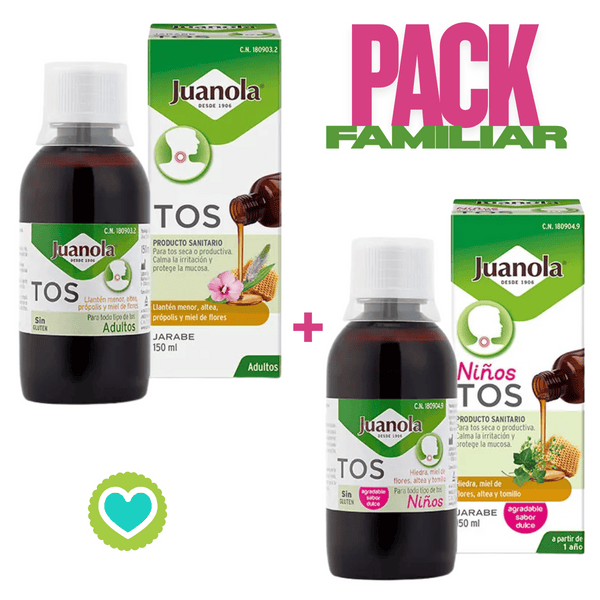 Enviamos su pedido dentro de 24/48 horasTos calmada para toda la familia Juanola Pack Tos Adultos Jarabe 150ml + Tos Niños Jarabe 150ml