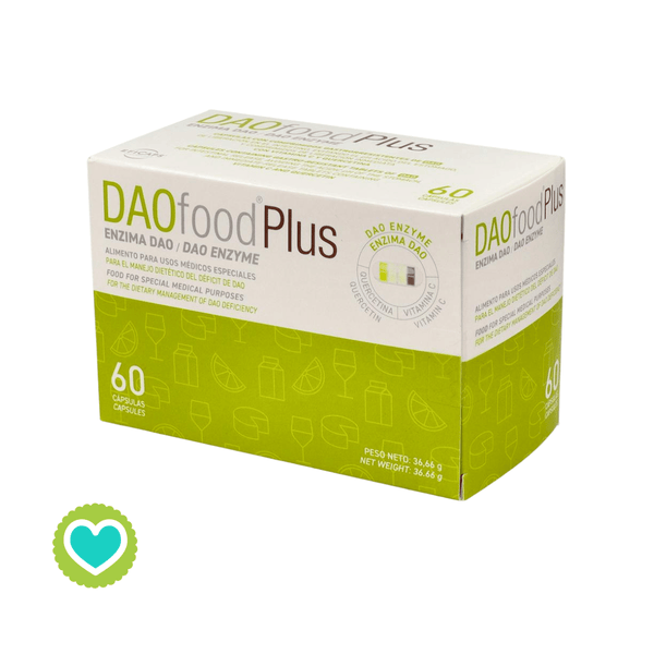 Es un alimento para usos médicos especiales que se usa en el tratamiento dietético del déficit de la enzima Diamino Oxidasa (DAO) cuando los síntomas predominantes son digestivos.DAOfood Plus 60 Cápsulas está elaborado para tratar el déficit de DAO, la enzima es la que se encarga de metabolizar la histamina ingerida. Se localiza en el epitelio intestinal.