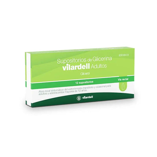Medicamento con propiedades laxantes administrada por vía rectal.Supositorios Glicerina Vilardell Adultos se trata de un medicamento elabora como un poderoso laxante gracias a su principio activo: el glicerol. Viene en un formato de supositorio que introduciremos fácilmente por la vía rectal para conseguir que el glicerol ablande las heces y que acompañada de una leve irritación local se estimulen los movimientos del intestino, con el que se aliviarán los síntomas del estreñimiento transitorio tanto de adultos como de adolescentes. En caso de la aparición de sangre en heces, irritación, dolor o que no mejore, debes interrumpir el tratamiento y consultar a tu especialista.